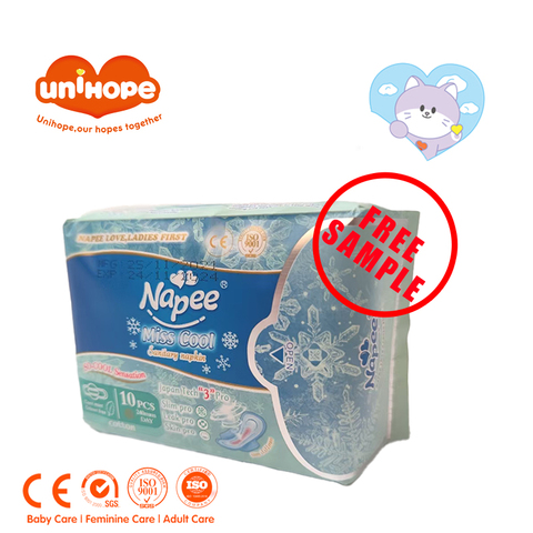 Servilletas sanitarias duraderas de muestra gratis de Unihope, toallas femeninas superabsorbentes, almohadillas de higiene transpirables para piel sensible femenina
